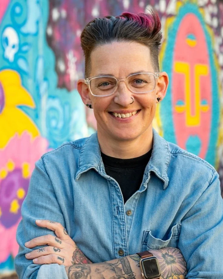 Kasey (she/her/hers) is a Chicago based jack of all trades. After graduating from Loyola University Chicago in 2017, she came onboard at Friendship as their administrative assistant. In preparation for our move into 5150, her role grew into its current iteration as Operations Manager. She is beyond grateful to be a member of Friendship’s community, and delights in supporting this group carry out their mission. When she isn’t serving the fine folks at Friendship, she can be found producing shows for local storytelling and burlesque groups. Outside of work, Kasey has many hobbies, including: gardening, film photography, metalsmithing/jewelry making, camping, hiking, and general carpentry projects (just to name a few!) She lives in Portage Park with her wife, Allison, and their two cats, Mac and Cheese, as well as one sweet pup, Mimolette. (Picture credit: Hannah Terwin)